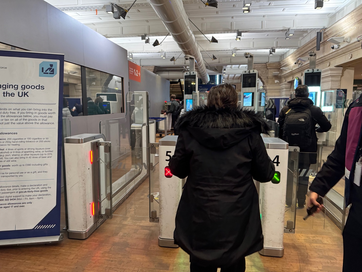 Premier contrôle à passer : le contrôle de votre billet de train pour Londres. Ce contrôle se fait via une borne automatisée. Pensez à avoir votre billet de train imprimé avec le QR code, ou mieux, l’application Eurostar sur votre téléphone. Scannez le QR code sur la borne pour l’ouvrir.