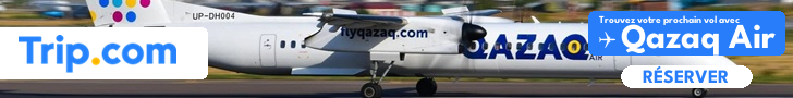 - les deux grands aéroports internationaux du pays sont Astana (au nord) et Almaty (au sud) : des vols réguliers avec Air Astana (la compagnie nationale), Qatar Airways, Turkish Airlines, LOT…