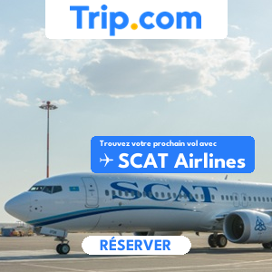 Pour réserver le billet, je suis passé par le comparateur de vol en ligne trip.com (voir les offres de billets entre Astana et Chimkent). En effet, le site de la compagnie aérienne SCAT Airlines était à l’époque un peu capricieux depuis l’étranger, et il était alors impossible de l’utiliser pour réserver un vol… Mais bonne nouvelle : cela semble s’être arrangé depuis.