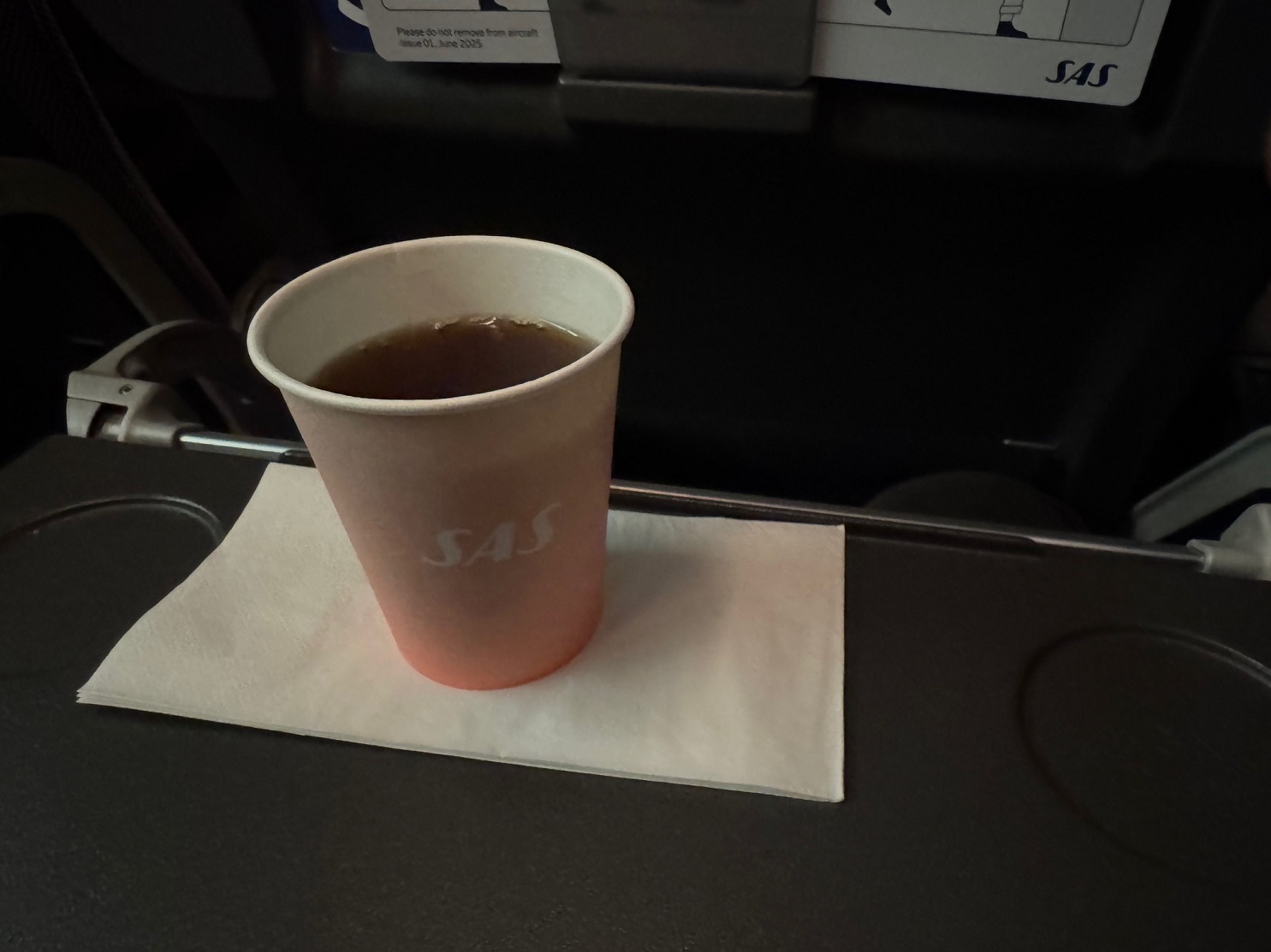 À bord du vol SK559 entre CPH et CDG, la prestation gratuite se résume à un thé (ou café)